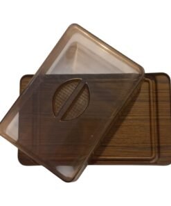 Porta formaggi/salumi in plastica, con vassoio effetto legno scuro
