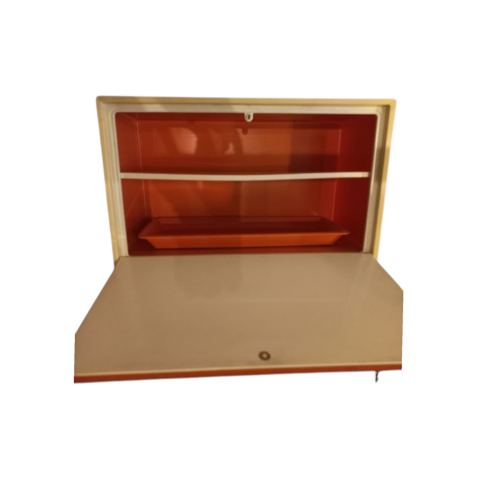 Porta pane in plastica colore arancione. Inclusi un ripiano e un vassoio.