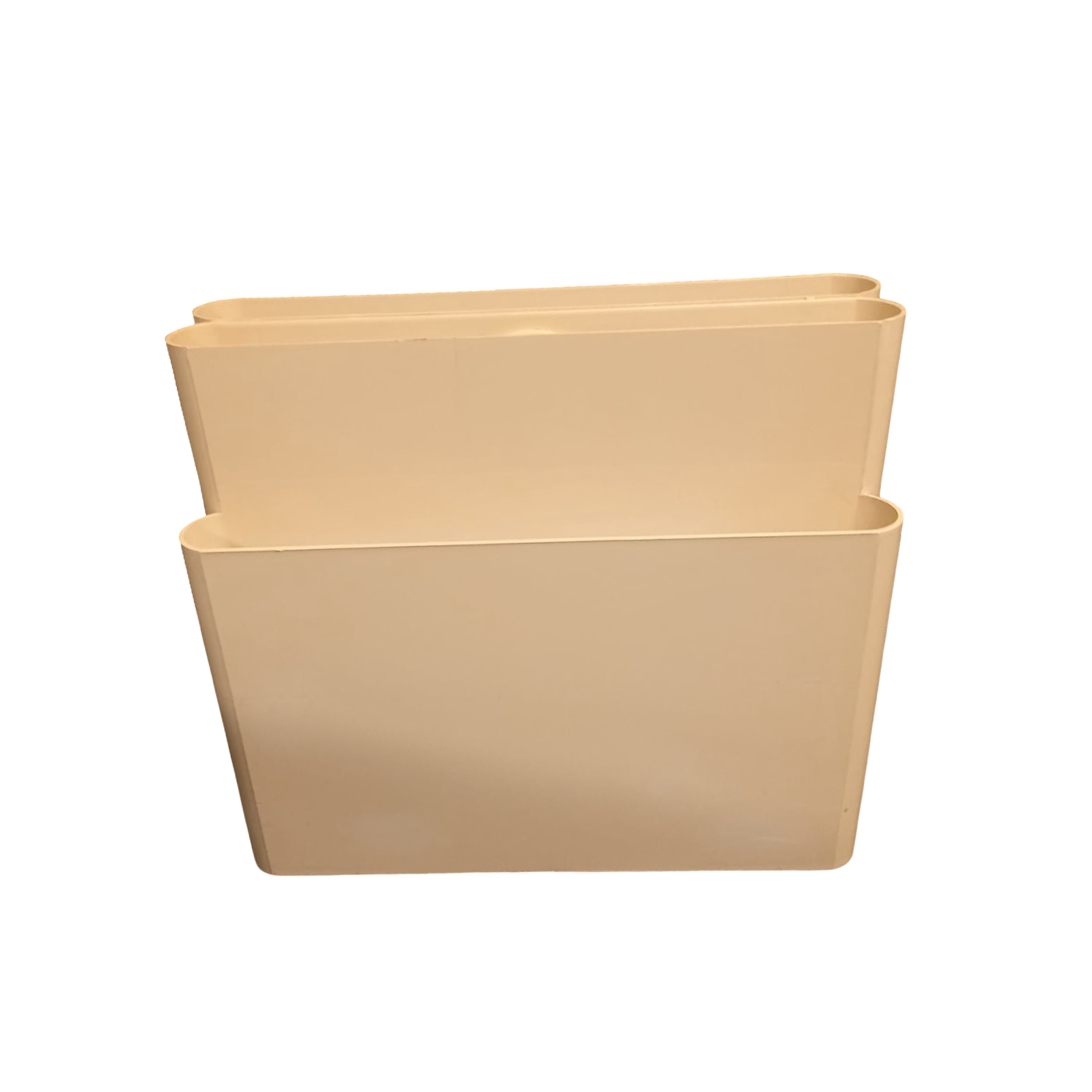 E’ in plastica bianco-beige con 6 vani. Presenta una maniglia tonda nel mezzo.