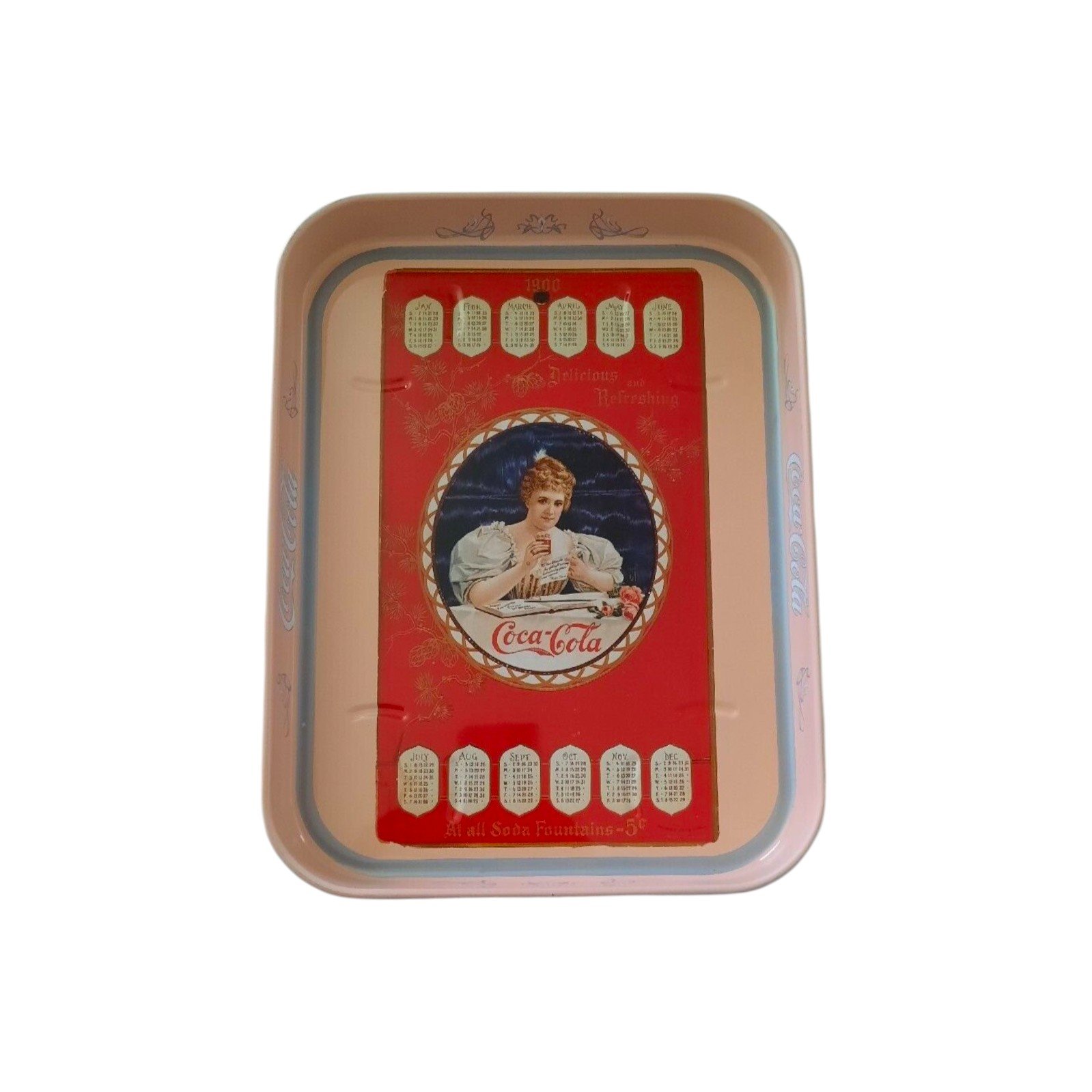 Vassoio della Coca Cola in metallo rettangolare “Con calendario” Pubblicità Vintage