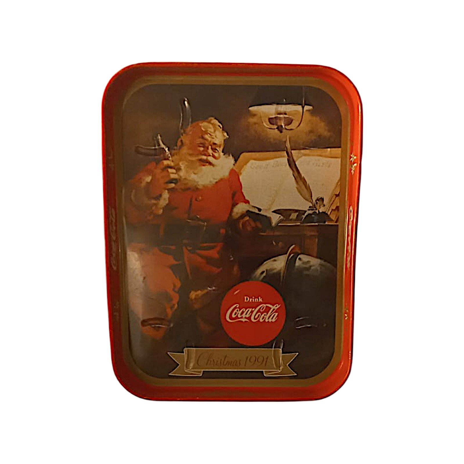 Vassoio della Coca Cola in metallo rettangolare “Natale 1991” Pubblicità Vintage